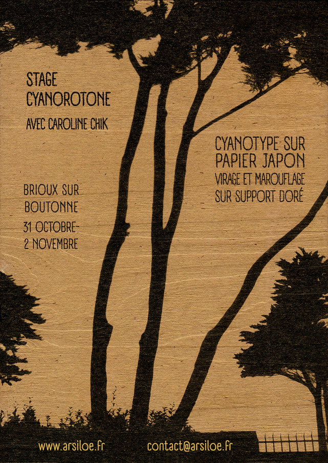 Je vous propose de réaliser un cyanorotone sur bois et un cyanorotone sur un autre support, de vous initier ou d'expérimenter les virages réalisés à l'aide de tannins naturels (café, thé, maté...), qui permettent d'obtenir des tons chauds se mariant bien avec la dorure. Vous testerez différents processus de virages (avec ou sans blanchiment).